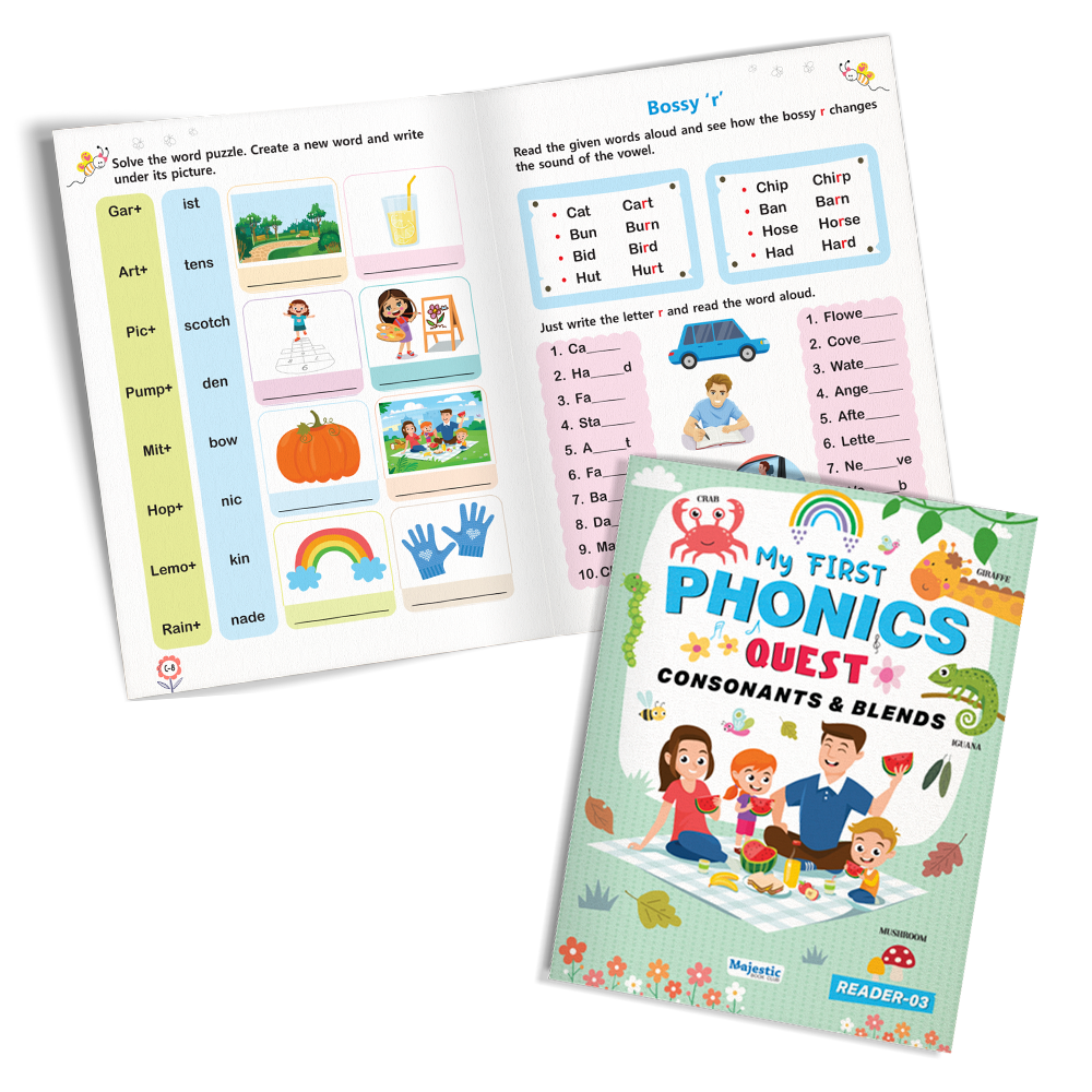 - Complete 4-Book Phonics Set: Covers alphabets, vowels, blends, words, and sentences in a structured sequence.