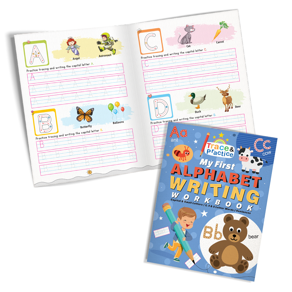 The Trace & Practice Writing Workbook Set helps young children learn to trace, write, and recognise letters, patterns, and scripts through fun, colourful activities. Covering Alphabet Writing, Cursive Writing, Pattern Tracing, and Hindi Sulekh, each workbook uses guided tracing exercises to improve pencil control, hand-eye coordination, and letter formation — making early learning both effective and enjoyable.